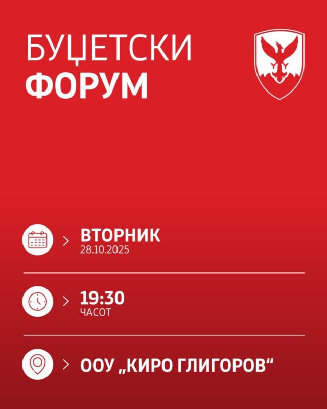 Градоначалникот на Општина Центар Горан Герасимовски ги повикува сите жители на општината да учествуваат на првиот буџетски форум за 2026 година, кој ќе се одржи во вторник, 28 октомври, во ООУ „Киро Глигоров“ со почеток во 19.30 часот.