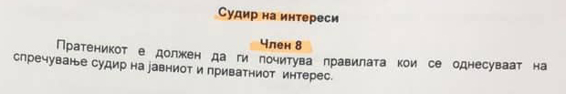 „Кога службено лице ќе дознае за околности што укажуваат на постоење судир на интереси или на потенцијален судир на интереси, должно е веднаш да побара да биде изземено и да запре со своето постапување.