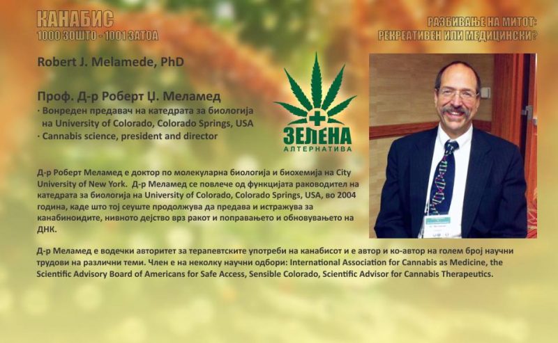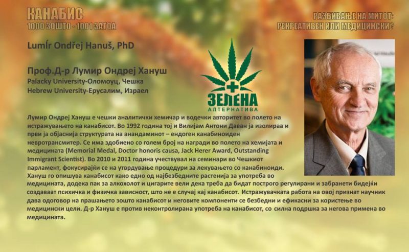 Свое предавање ќе има научникот заслужен за откривањето на ендоканабиноидниот систем, д-р Лумир Ондреј Хануш, кој по потекло е од Чешка, но својата работа ја врши во Израел и е носител на најважните откритија од полето на канабисот и ендоканабиноидниот систем. Предавање ќе одржи и д-р Роберт Меламед, доктор по молекуларна биологија, чии истражувања се во полето на канабиноидите, канцерот и обновувањето ДНК, кој, освен искуство во своите истражувања, има и долгогодишно искуство во третирањето пациенти со канабис.