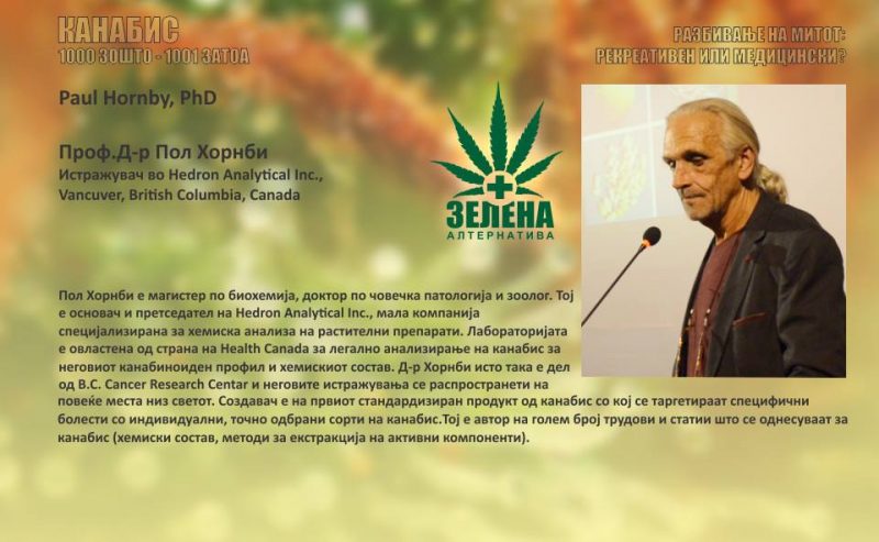 Во првиот дел на семинарот се предвидени предавања на професори, доктори и научници, признаени во светот за нивната посветеност, достигнувања и работа во областа на канабисот. Во овој дел свои предавања ќе имаат д-р Пол Хорнби, доктор и научник од Канада, со повеќе од триесетгодишно искуство во третирањето пациенти со канабис и екстракти од канабис и познат како човекот што прв стандардизирал канабис-екстракт со кој се лекуваат специфични болести.