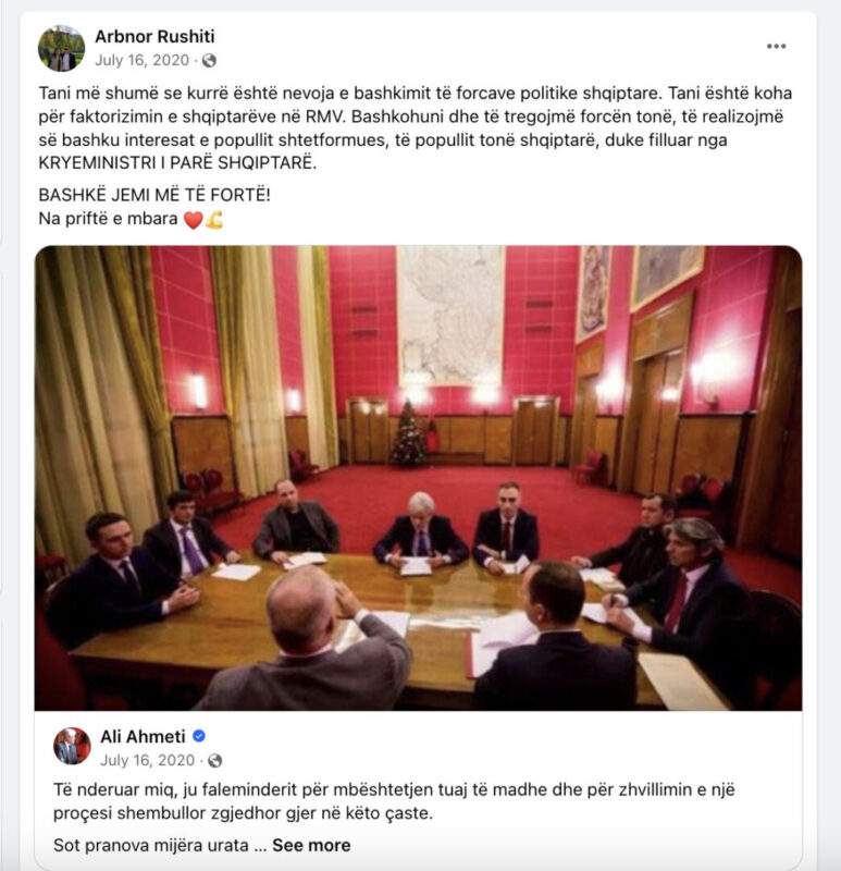 Со ДУИ се поврзуваат двајца кандидати, од кои Фикрет Зенуни е член на оваа партија и бил кандидат за претседател на партискиот разгранок во Врапчиште, од каде што потекнува. Тој дипломломирал бизнис и админситрација. Вториот кандидат е Арбнор Рушити, дипломиран инженер по информатика, кој работи на Клиниката „Мајка Тереза“ во Скопје. На профилот на Рушити има многубројни форографии споделени од него, а објавени од функционери на ДУИ, како и од Али Ахмети.