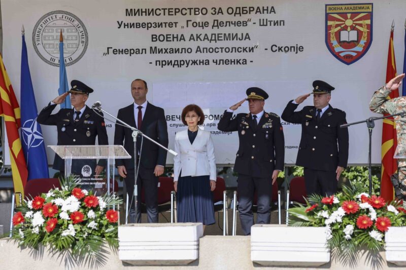 Претседателката Гордана Сиљановска-Давкова, денеска, на Воената академија „Генерал Михаило Апостолски“ во Скопје се обрати на свечената промоција на 24. класа питомци во првиот офицерски чин – потпоручник, слушателите на курсот за офицери на служби во почетен офицерски чин – поручник и слушателите на основниот курс за подофицери во првиот подофицерски чин водник.