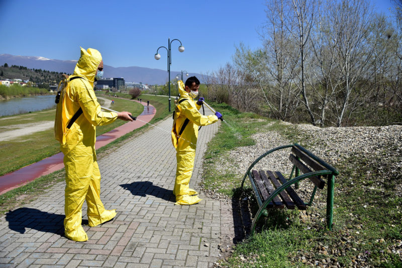 Во текот на изминатиов период ЈП „Комунална хигиена“ секојдневно спроведува машинско миење со автоцистерни и дезинфекција на поголемите улици и булевари во сите скопски општини, како и рачно миење и дезинфекција на најфреквентните јавни површини во централното градско подрачје.
