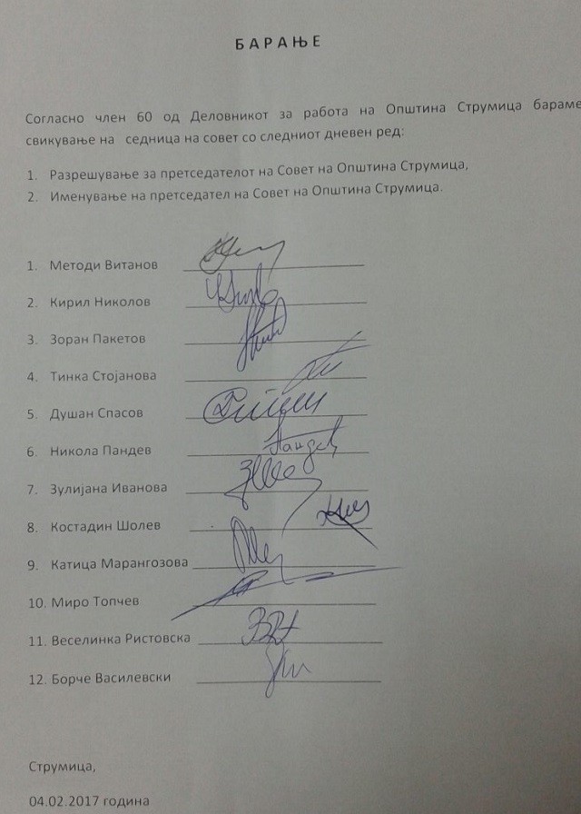 Викендот, советници во Општина Струмица од политичката партија ВМРО-ДПМНЕ, изјавија дека еден советник, преминал од ВМРО-НП во нивни редови, со што СДСМ и градоначалникот Зоран Заев ја губат поддршката на народот и повеќе не се мнозинство за управување со градот, а во понеделник, советникот се јави со видео во кое вели дека е изманипулиран и дека од сега ќе делува независно.