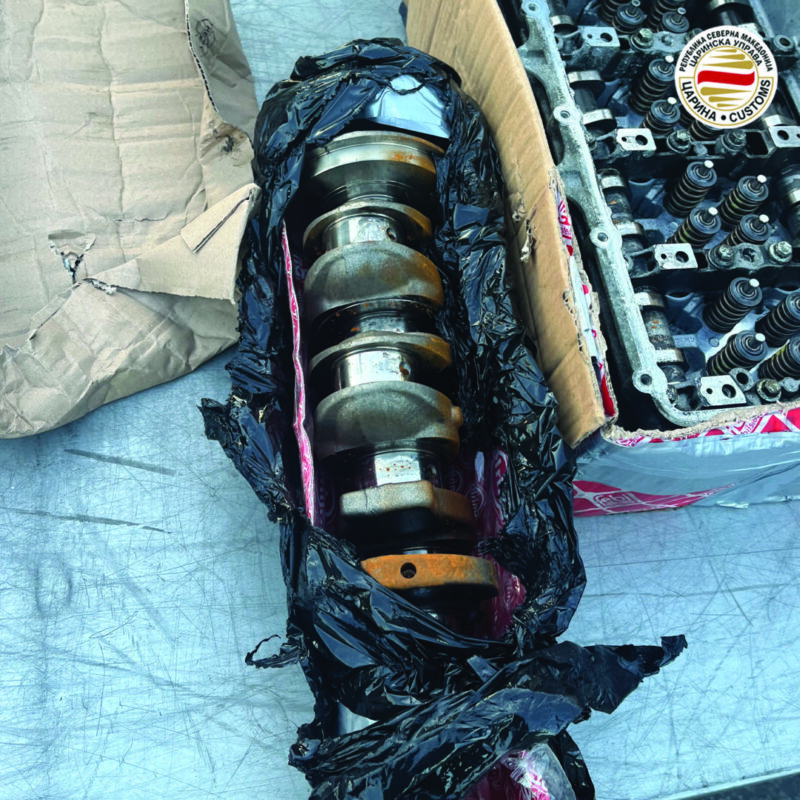 – Три комплети глава за мотор со вентили и работилка и две коленести вратила за патнички возила се откриени од страна на царински мобилен тим при контрола на автобус управуван од македонски државјанин на граничен премин Табановце.