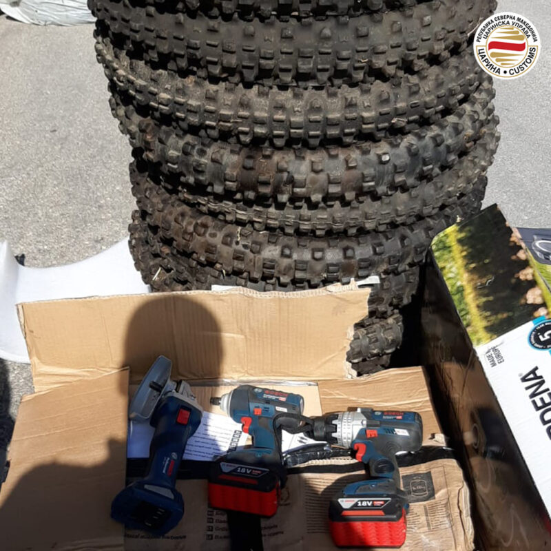 Меѓу непријавената стока се четири употребувани мотоцикли со вредност од 392.285 денари, како и брусилка, бор-машина, гуми за крос0мотори, гуми со алуминиумски бандажи, метален сеф, пневматски пиштол, скара и котури гумени црева во вредност од 81.347 денари. Обидот за шверцување е откриен од страна на царинските инспектори од мобилниот тим на Царинската управа при детаљна контрола на камионот што се пријавил за увозно царинење на царинската филијала во Тетово.