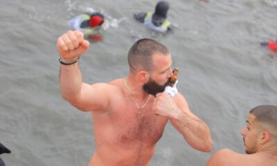 Теодор Јовевски го фати крстот во водите на реката Вардар во Скопје за Водици.