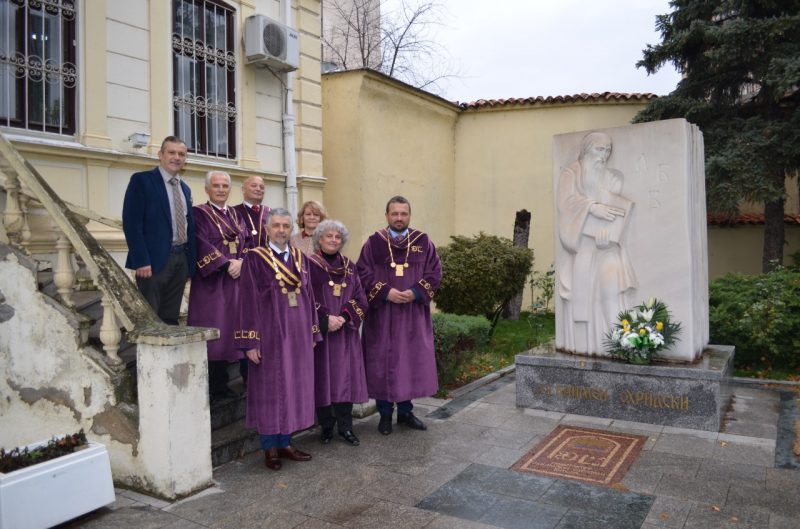 Ректорот на УКЛО проф. д-р Сашо Коруновски придружуван од проректорите на Универзитетот и Претседателот на Сенатот на УКЛО положија свежо цвеже и ми одадоа почит на Св.Климент Охридски во рамки на Ректоратот.