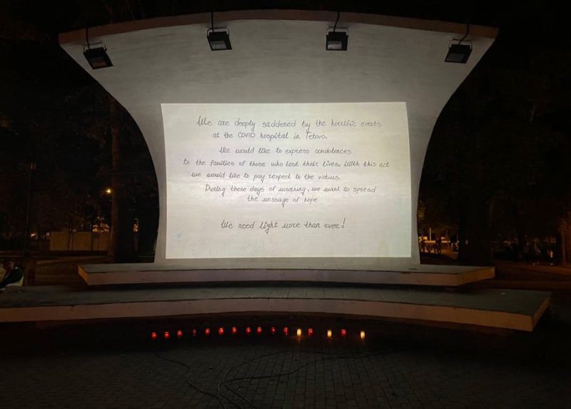 „Потребна ни е светлина повеќе од било кога“ – со оваа порака, уметниците и продукцискиот тим на меѓународниот фестивал на светлосна уметност, Skopje Light Art District им оддадоа почит на трагично загинатите во пожарот, кој во петокот ја зафати модуларната болница во Тетово.
