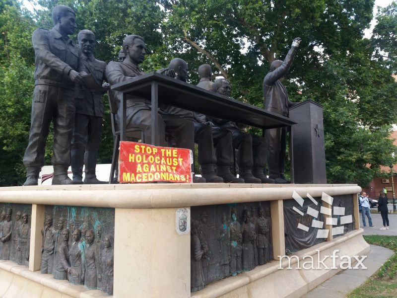 Пред крајот на протестот улесниците фрлаа со петарди кон полицијата, употребувајќи навредливи зборови.