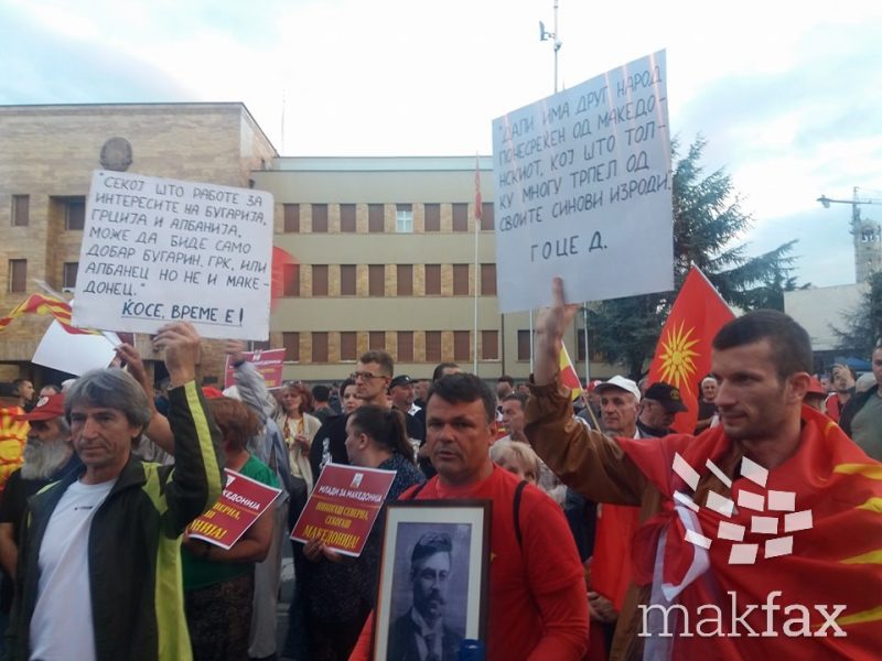 Учесниците на протестот пред Собрание, кој се одржува против промена на името, најавија кривична пријава против првиот човек на Бирото за јавна безбедност и побараа интерпелација за министерот за внатрешни работи Оливер Спасовски поради прекумерна упоребна на сила од страна на полицијата на протестите.