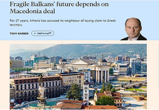 На крајот, сите влади во ЕУ не сaкаат да отворат преговори со Македонија. Во НАТО не го гледаат сите на членството на Македонија како приоритет. Работите повеќе ќе се разјаснат на самитот на ЕУ во јуни и на самитот на НАТО во јули. Двата настани доаѓаат многу брзо за договор меѓу Македонија и Грција. Доколку е така, ЕУ и НАТО треба да одолеат на искушението да го искористат неуспехот како изговор за занемарување на македонското прашање. Балканот денес е премногу кревок за да си дозволи такво задоволство“, заклучува во колумната за „Фајненшл тајмс“, авторот Тони Барбер.