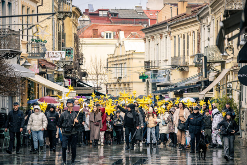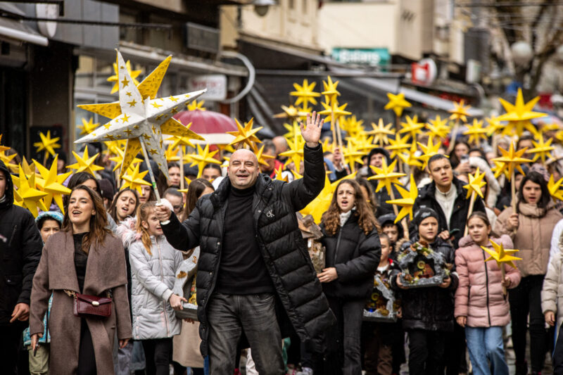 (Фото) Со песна и насмевки коледарчињата од Кисела Вода во Бадниковата поворка
