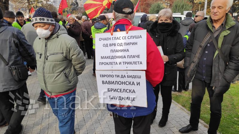 Кризниот штаб против промена на Уставот, зад кој стои партијата на Јанко Бачев „Единствена Македонија“ протестираше пред Собранието.