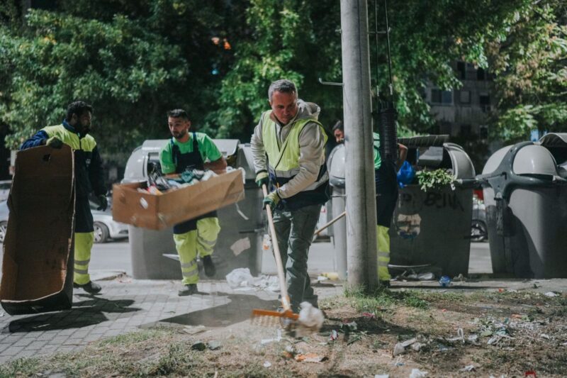 (Фото) Герасимовски чистеше со хигиеничарите на повеќе локации во Центар: Се надевам дека градската власт ќе се свести