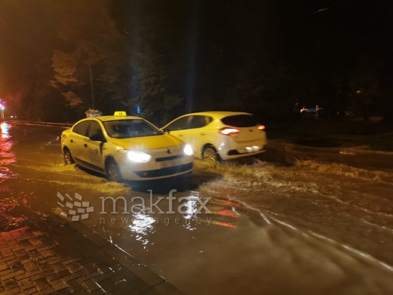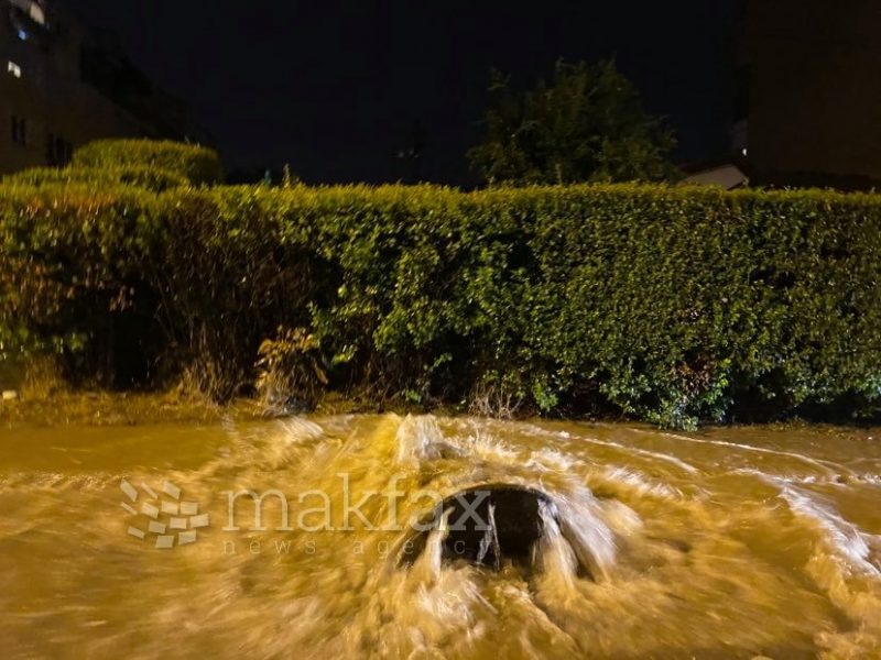 Невреме со пороен дожд, грмежи и ветер го зафати вечерва главниот град. Поплавени улици и тротоари можат да се забележат по обилните врнежи.