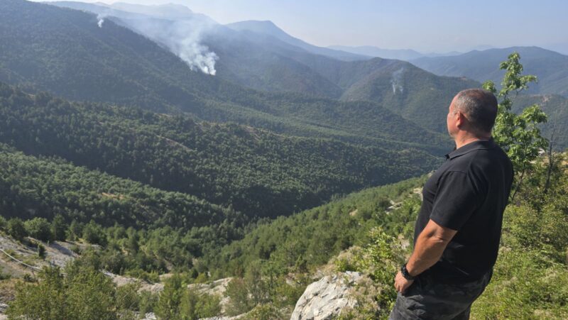 Како што изјави тој, се дејствува со два „ер трактора“ на Дирекцијата за заштита и спасување. Една жешка точка има високо на сртот, а од спротивната страна две жешки точки со чадење. Се работи за екстремно стрмен терен и терен со зимзелена шума, што е исклучително ризично да се спуштат луѓе.
