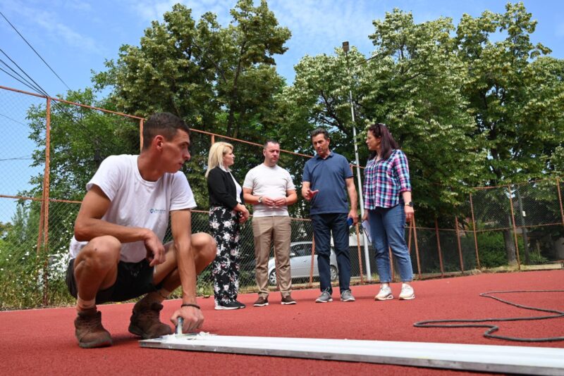 Градоначалниот на општина Гази Баба Бобан Стефковски направи увид на градежните активности за изградба на нов спортски терен на најсовремена тартан подлога кој се гради во Ченто кај старата полициска станица.