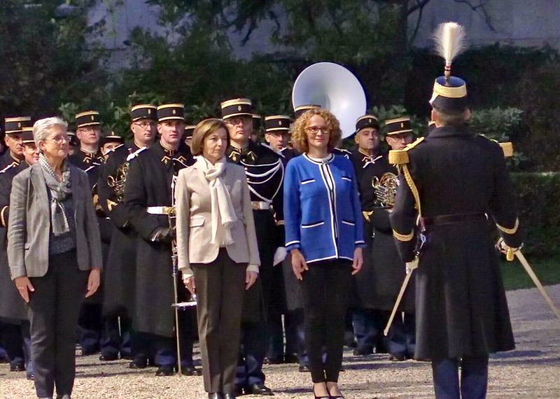 На средбата и претходеше официјален пречек од страна на министерката за вооружените сили на Франција, Флоранс Парли и државната секретарка Женевиев Дариосек, со највисоки воени почести, интонирање на македонската и на француската химна и постројувањена Републиканската гарда и свечените трупи на сите родови на вооружените сили на Франција.