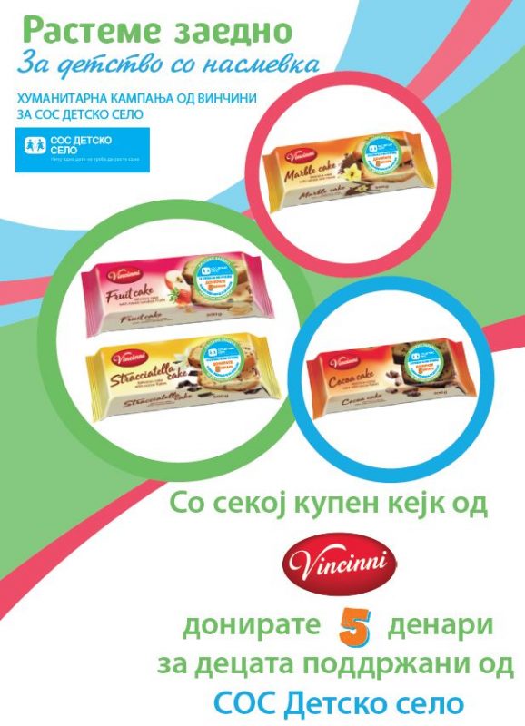 “Особено сме горди и благодарни што имаме стратешки партнер како Макпрогрес коj низ годините несебично ја помага нашата работа. Ги повикуваме сите граѓани да се вклучат во кампањата со купување на производот кејк од Винчини и на тој начин ќе ја поддржат кампањата и да донираат за СОС Детско село. Индивидуалната одговорност на секој од нас е многу важна за општеството. Тоа е можност секој поединец да споделува вредности со хумана мисија и да овозможува остварување на нивните цели. А наша цел е Топол дом и грижа за секое дете.” Изјави националната директорка на СОС Детско Село Јулијана Накова Гапо.