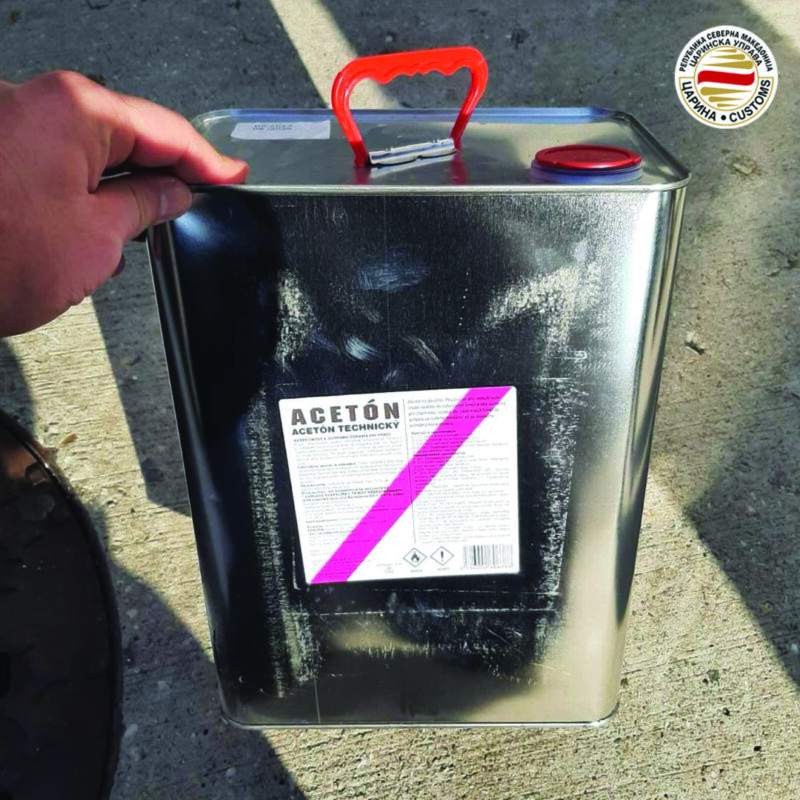 „Имено, на ден 10.12.2023 година на граничниот премин Табановце за влез во Република Северна Македонија при преглед на патничко моторно возило со словачки регистарски ознаки во багажниот простор од страна на царинските инспектори пронајдени се четиринаесет лимени канти со вкупно 126 литри прекурзори на дрога од кои 10 лимени канти со налепница TOLUEN LAKARSKY со тежина од по 9 литри и четири лимени канти со налепница ACETON со тежина од по 9 литри. По извршено вештачење на стоката, утврдено е дека се работи за прекурзори кои се користат за производство на некои видови на дроги како кокаин, хероин и амфетамински тип на дроги“, известува Царинската управа.