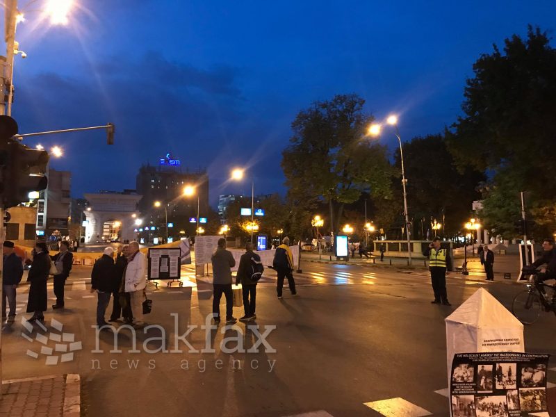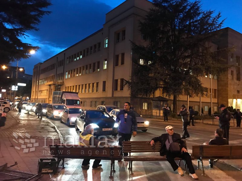 Десетина луѓе целосно го блокираа сообраќајот во централното градско подрачје. Тие излегоа на протест пред Собранието против договорот со Грција, а на улиците поставија и клупи.