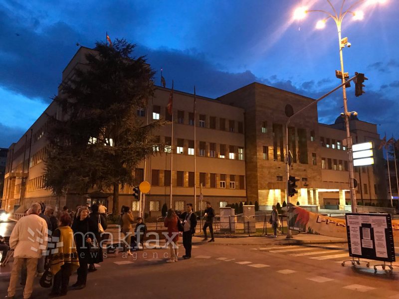 Центарот блокиран, десетина луѓе протестираат пред Собранието