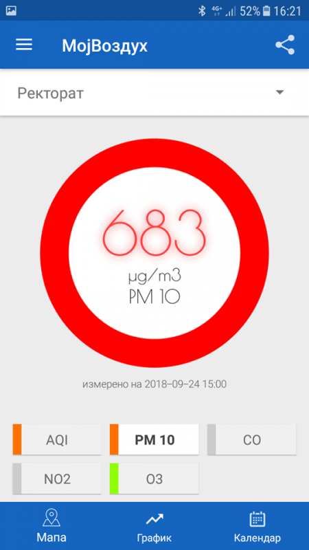 Mерните станици за квалитетот на воздухот попладнево покажаа високо ниво на загаденост во скопските општини. Според последните мерења, по силниот ветер најголема загаденост е регистрирана кај Ректоратот каде се измерени концентрации на ПМ10 честичките од 683 микрограми.