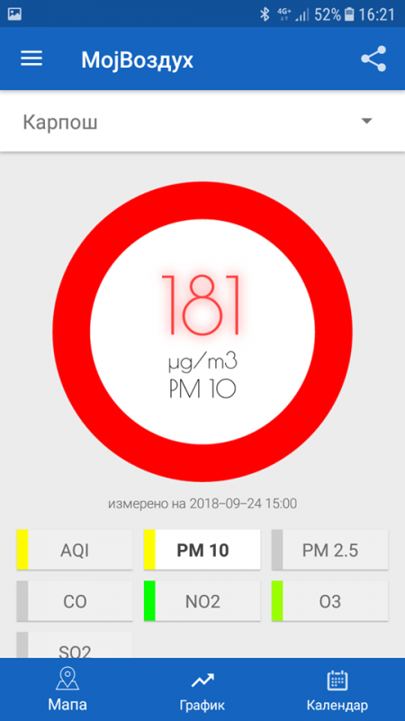 По Центар, највисока е загаденоста во Бутел со 280 и Карпош со 181 микрограми ПМ10 честички.