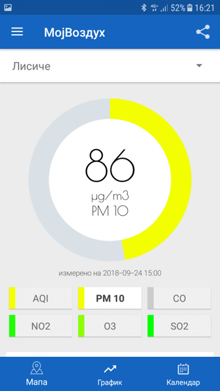 Најмала е загаденоста во Лисиче, каде последно се измерени 86 микрограми ПМ10 честички.