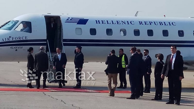 Грчкиот премиер, Алексис Ципрас, пристигна на скопскиот аеродром, каде што беше пречекан од владината делегација предводена од вицепремиерката Радмила Шекеринска.