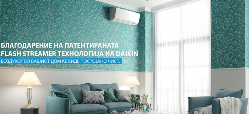 Решенијата на Daikin ветуваат поздрав и поквалитетен воздух во домот благодарение на иновативната технологија Flash Streamer, која е вградена во голем број од производите на Daikin.