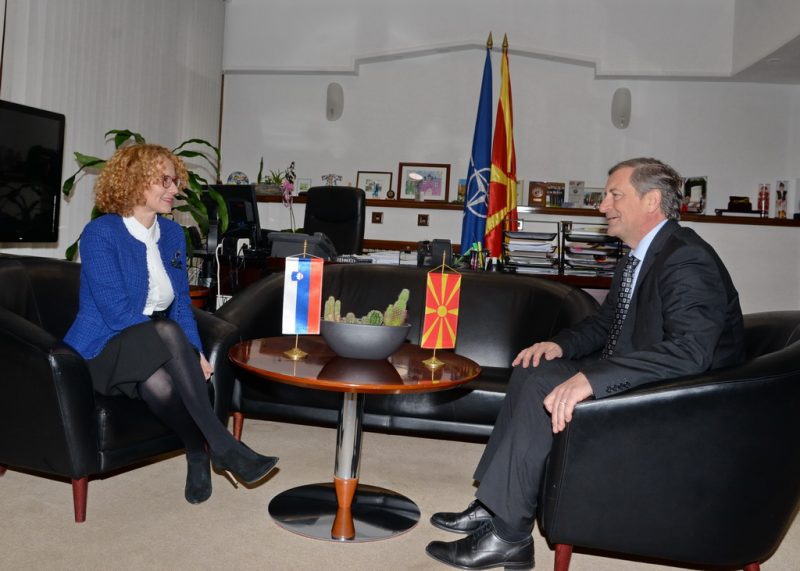Министерката за одбрана, Радмила Шекеринска, се сретна со нејзиниот словенечки колега, Карл Ерјавец, кој престојува во официјална посета на Република Македонија.