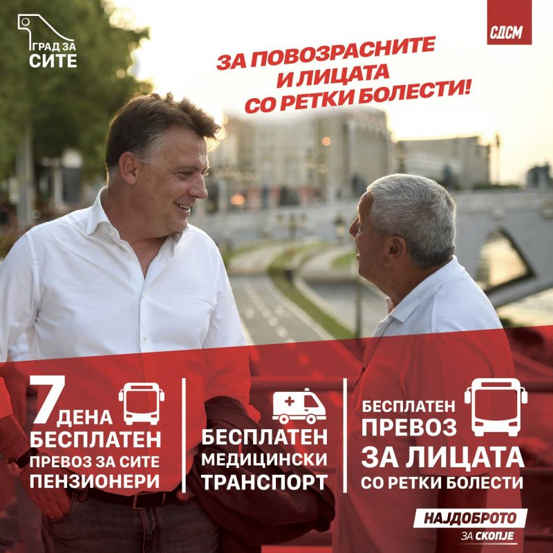 Овој пакет од социјални поволности е наменет за сите групи – за возрасните и пензионерите, лицата со попреченост, лицата со ретки болести, младите и идните родители. Продолжуваме со остварување активности за поквалитетен живот во нашето Скопје, за подобро секојдневие на нашите сограѓани, за поудобни и побезгрижни денови во овој град.