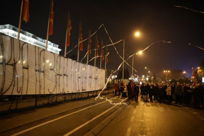 Претседателот на Граѓанската опција за Македонија (ГРОМ), која е дел од коалицијата „За обнова на Македонија“, Стевчо Јакимовски, на протестот пред македонската Влада порача дека граѓаните овие ладни денови се собираат за да го спречат, како што рече, националното предавство, кое неколкумина во Владата сакаат да им го направат на Македонија и на македонскиот народ.