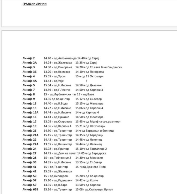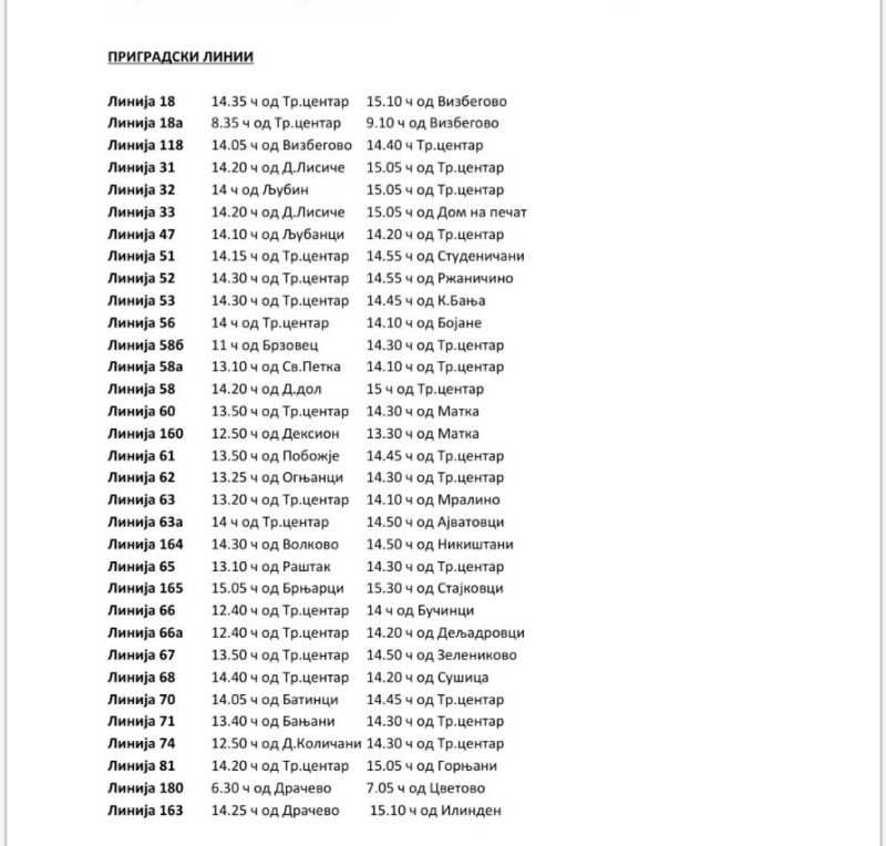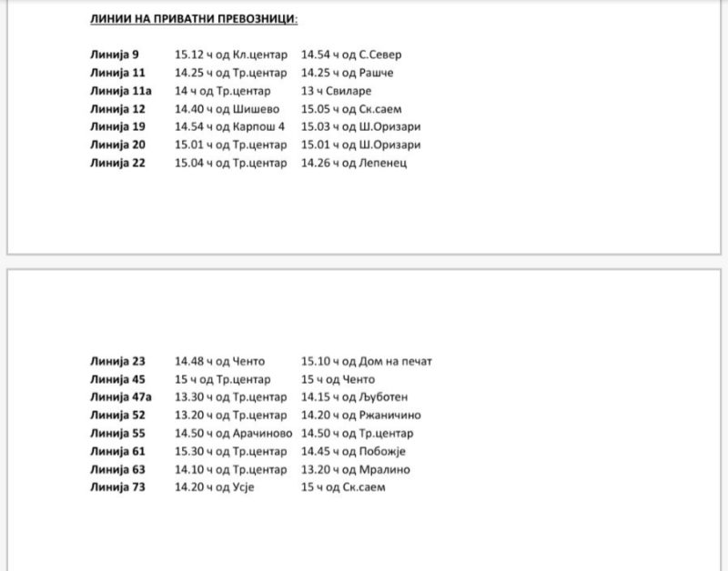 Автобусите ќе возат по саботен возен ред, со исклучок на линиите 9, 19, 20 и 23, кои ќе сообраќаат по редуциран делничен возен ред.