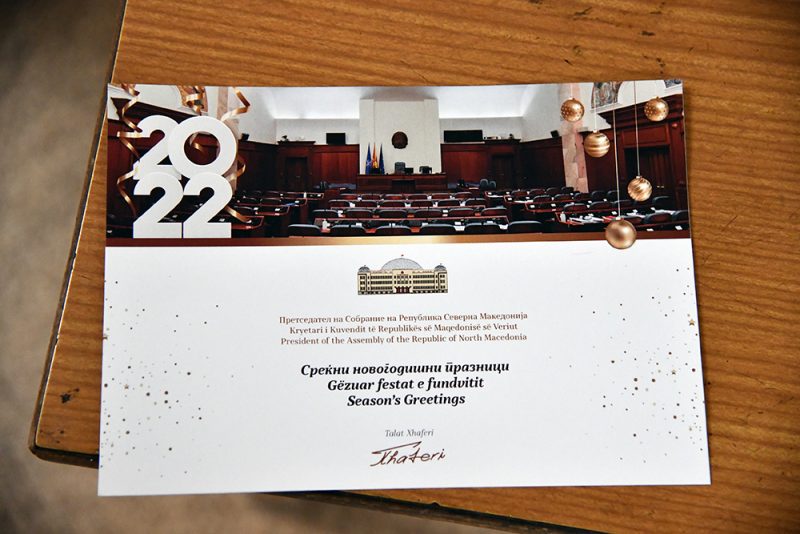 Оваа година, Џафери испрати електронска честитка до амбасадорите на странските земји, до пратениците и службениците во Собранието, потврдувајќи ја и со овој чин посветеноста и заложбата за сведување на употребата на хартија во Собранието во 2022 година само на неопходниот минимум.