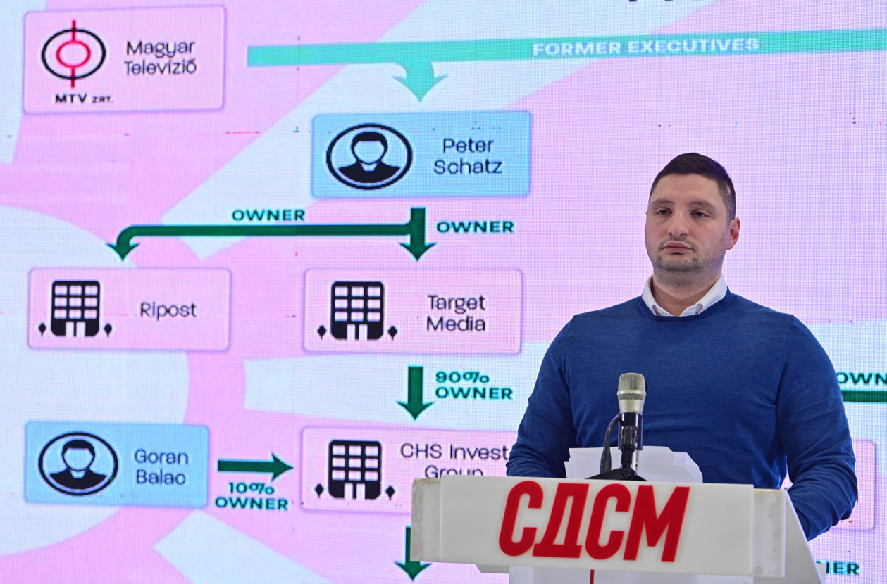 На прес-конференција, членот на Извршниот одбор на СДСМ, Јон Фрчкоски, изјави дека унгарски компании и поранешни високи функционери од унгарскиот јавен сервис систематски купувале контролни удели во македонски телевизии и портали. Како примери ги наведе фирмите „Target Media“ и „Adinamic Media“, како и медиумските групации поврзани со Алфа ТВ и повеќе онлајн портали.