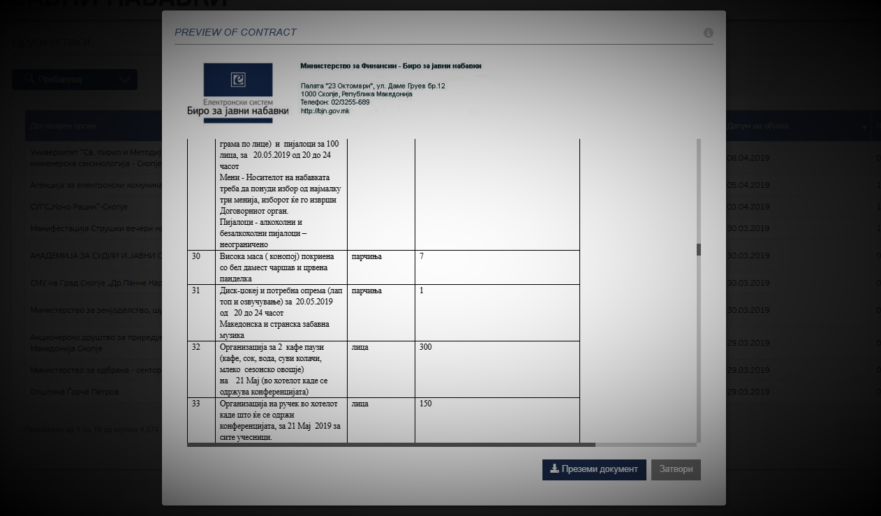 Агенцијата за електронски комуникации на Бирото за јавни набавки објави тендер за набавка на услуги за организирање конференции и состаноци. Станува збор за оглас објавен на 5 април, во кој пишува дека вкупната вредност на договорот е 4 милиони и 956 илјади денари или приближно 80 илјади евра, со вклучен ДДВ.