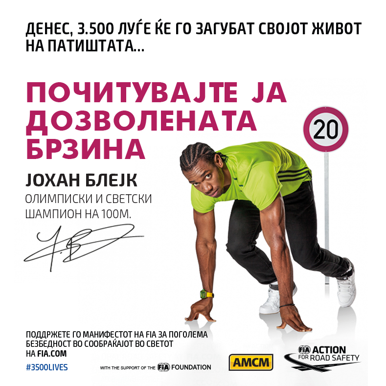 АМСМ, како единствена членка на ФИА од Македонија – Светската автомобилистичка организација, се приклучува кон иницијативата за ден без ниедна жртва во сообраќајот.