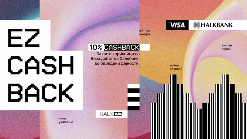 Појадок во пекара, на вежбање барем два пати неделно, ручек или вечера во ресторан, во кино со друштвото, на супер забава во ноќен клуб. Халкбанк започна нова Cashback кампања за младите на кои овие активности им се дел од неделната рутина. Сите корисници на Halk EZ пакетот кои плаќаат со Visa PayWave дебитната картичка, а и корисниците на Visa Platinum дебитните картички имаат можност да добијат 10% поврат на средства (cash back) за трансакциите направени на одредени продажни места низ земјата.