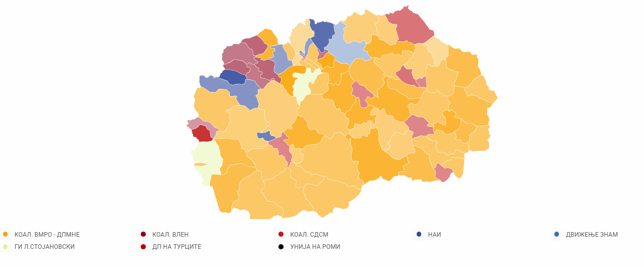 Иако засега се обработени мал број од гласовите, мапата е обоена во портокалова боја.