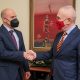 Претседателот на СДСМ и мандатар за состав на новата Влада, Димитар Ковачевски, заедно со секретарот за меѓународна соработка, Бојан Маричиќ, денеска се сретна со претседателот на...