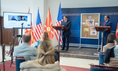Министерот за надворешни работи, Бујар Османи заедно со помошник државниот секретар Филип Рикер, амбасадорката Кејт Мари Брнз, кои беа вклучени преку видео-конференциска врска и директорот на...