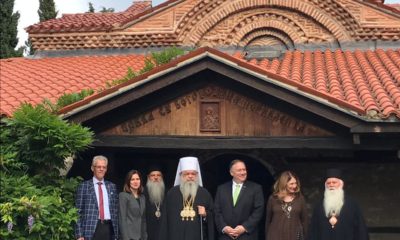 Државниот секретар Мајкл Р. Помпео и неговата придружба, во која се помошникот државен секретар, Филип Рикер, амбасадорката на САД во Северна Македонија, Кејт Мари Брнз и...