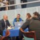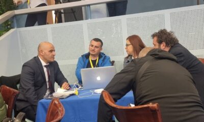 Премиерот Димитар Ковачевски ги посети новинарите во прес-центарот кои на највисоко ниво ја следат денешната рунда дијалог меѓу Белград и Приштина. Macedonian PM, Kovachevski is hanging...