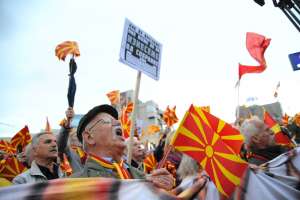 Со автобуси и багери пред себе, поголема група граѓани предводена од Граѓанската иницијатива „За заедничка Македонија“, со знамиња и транспаренти по 39-ти пат во четврток попладне одржаа мирен протест.