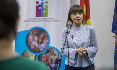 Министерката за труд и социјална политика, Мила Царовска, Софи Беамонт, преставничка на Делегацијата на ЕУ во Скопје, и Роберт Кроис, тим лидер на проектот, денеска во...