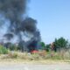 Пожар избувна на улицата Скупи покрај Вардар. Чадот се гледа и од околните наслеби. Пожарот не е од сериозни размери, а е во близина на напуштени...