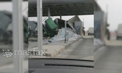 Товарен камион се преврте пред влезот на Штип при минување патарина. Несреќата се случи утринава, а направена е голема материјална штета. Стоката што ја превезувал, поради...